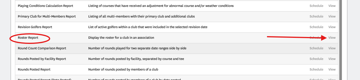 4. Locate the report titled "Roster Report" and click View to the right of the report.