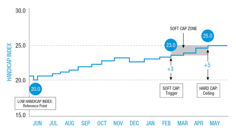 The illustration below demonstrates how the caps are tied to a player's Low Handicap Index - which is used as a reference point.